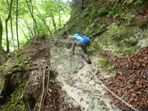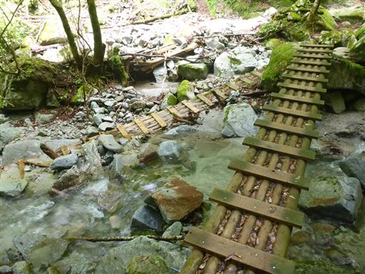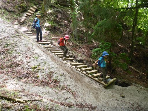 大きな堰堤を何度か超える。堰堤横の階段は段差が大きくて登りにくい。