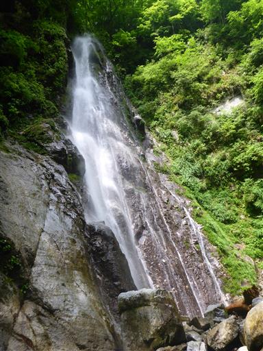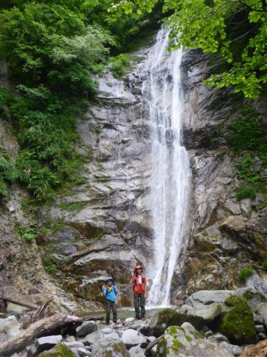続いて本棚の滝に寄り道。丹沢三滝に数えられる立派な滝だ。