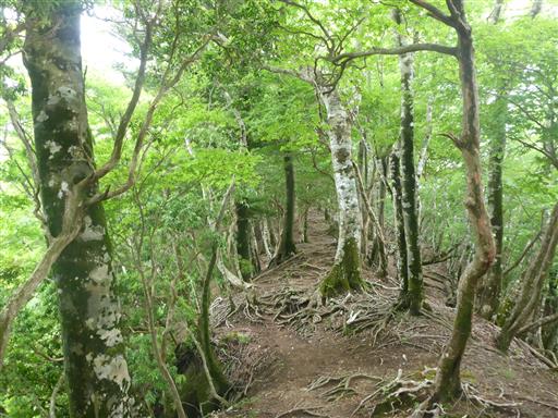 ここからはゆったりとした尾根道。ブナの木が多い。