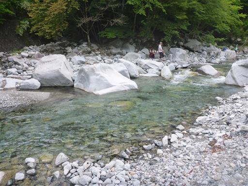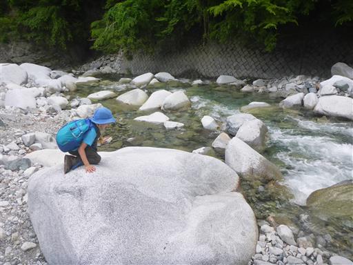 広い河原まで下りてきたら、河原で休憩を兼ねて少し遊ぶ。