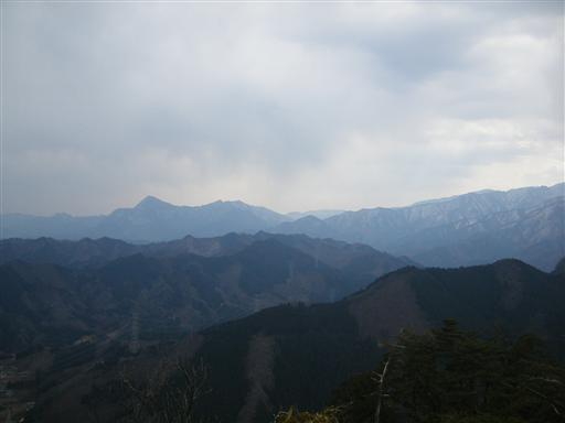 振り返ると秩父の山並がよく見える。左の三角形は武甲山。