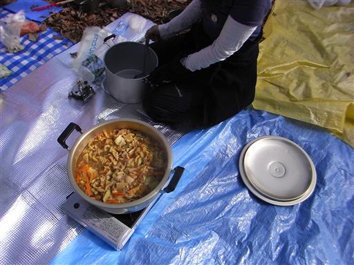 本日はカレー鍋。山頂の一角を占拠して早速準備を始める。