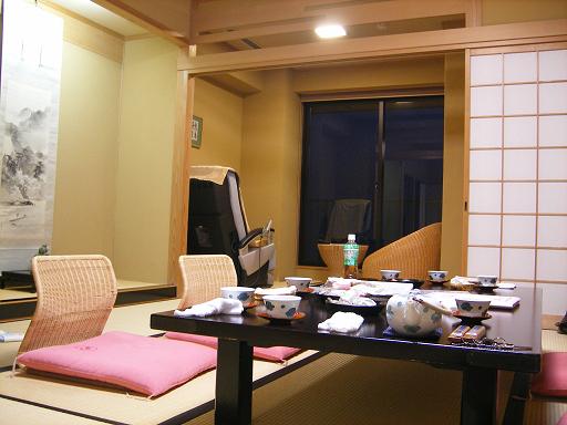 宿の部屋。典型的な和室。各部屋に露天風呂がついている。