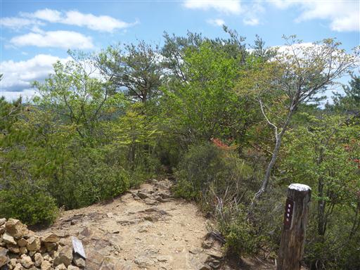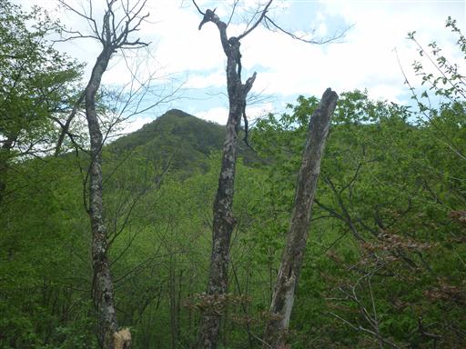 尾根が細くなり山頂部が見えてきた。