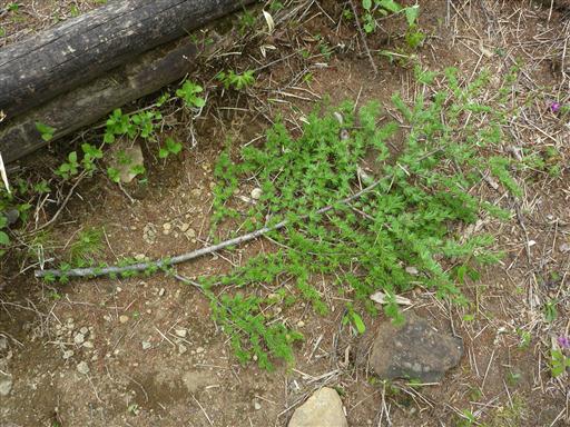 足元にはカラマツの枝がたくさん落ちている。