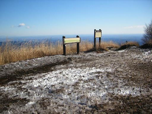 山頂の景色。白く見えるのは雪ではなく霜柱。山頂は非常に寒い。