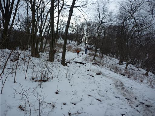 下山道は北側斜面なので、一面雪に覆われている。