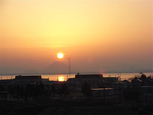 車窓からは琵琶湖の向こうに日が昇るのが見える。
