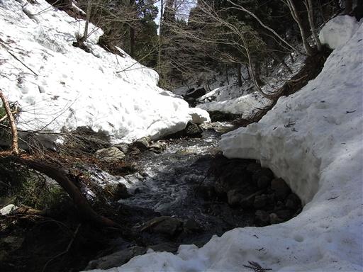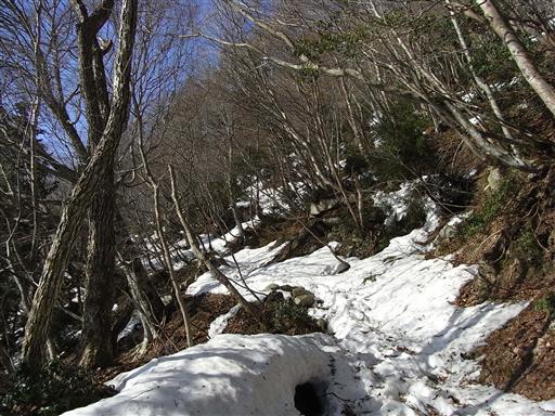 上の方はもっと雪が多そうだが、登山者が多いので気にせず登る。