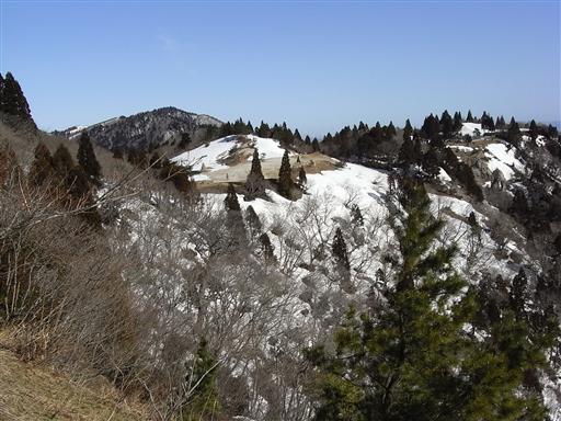 北比良峠に到着。青い空、白い山に囲まれた広々とした平地。