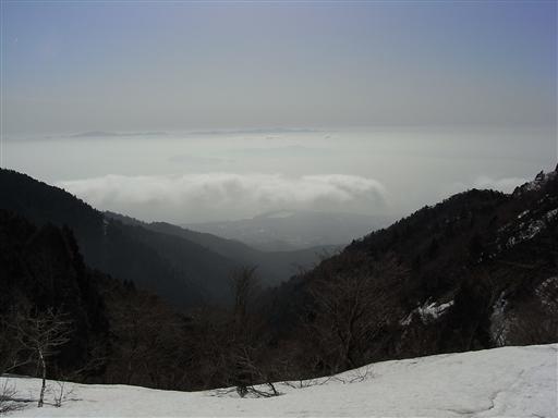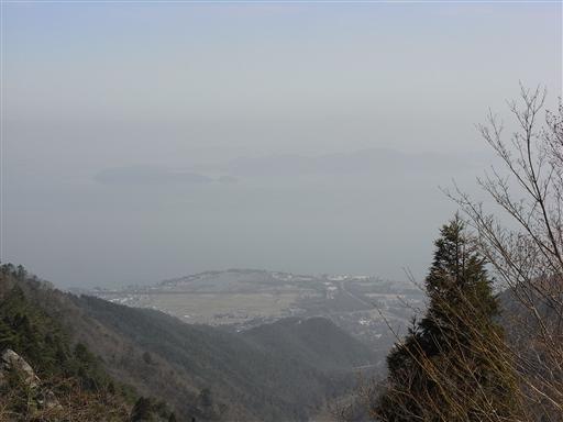 眼下に琵琶湖が見えてきた。相変わらず下界の展望はパッとしない。
