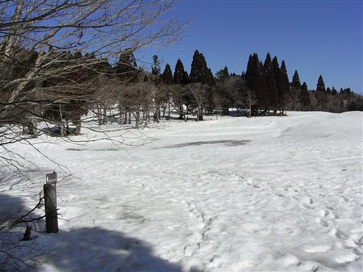 八雲ヶ原に到着。関西では珍しい高層湿原も、一面雪原になっている。