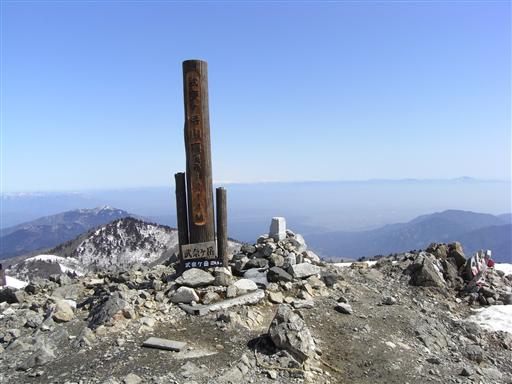 その右に見える白い山ふたつは乗鞍と御嶽のようだ。
