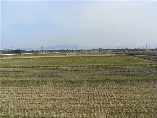 振り返ると、靄の向こうにかすかに鈴鹿の山が見える。