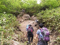 ![]() | 御神楽岳 | ★★ | ★★ | 2009.09.05 | 栄太郎新道は御神楽岳の大岸壁を眺めながら登るルート。ところどころに岩場、鎖場がある。 |