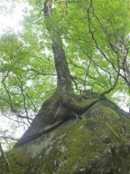 ![]() | 高川山 | 2022.05.06 | 石の上で折れ曲がった木。これ以上進めなかったので方向を変えたのだろうか? |