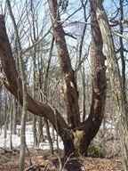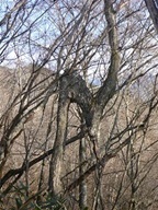 ![]() | 仙人ヶ岳 | 2010.03.27 | 3本の幹が合体し、そこから2本の幹が伸びている。木の結合部を見ると枯れているようにしか見えないが、上部は普通の木だ。 |