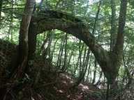 ![]() | 御前ヶ遊窟 | 2023.06.10 | 途中で折れ曲がった巨木。このような形の木はまれにみるが、ここまで大きく成長しているのは珍しい。 |