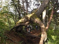![]() | 苗場山 | 2009.09.27 | 地面に大きく露出した木の根の下を潜って登山道が付けられている。 |