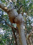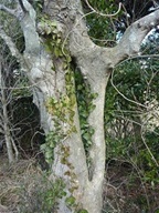 ![]() | 沼津アルプス | 2010.02.06 | 木の幹が途中で二岐に分かれて、上部で再び合体している。上を見ると完全に一本の幹になっている。 |