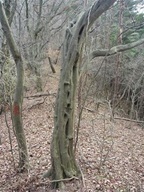 ![]() | 御正体山 | 2020.12.29 | N字形の木。途中で一度幹が折れた後、再び上に向かって伸びたのだろう。 |