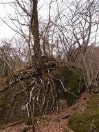 ![]() | 雪入山 | 2019.03.10 | 木の幹と見紛うような太い木の根が岩の上を這っている。 |