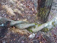 ![]() | 大洞山 | 2021.02.28 | 大きな木の幹が巻き合っている。ぐるぐる巻き合う木はあるが、大きな幹同士と言うのは珍しい。 |