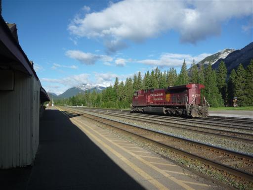 バンフの鉄道駅。電車も人も無く閑散としている。