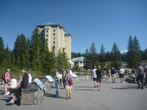 レイク・ルイーズに到着する。背後に見えるのはビクトリア山とビクトリア氷河。