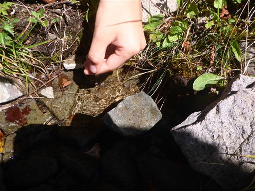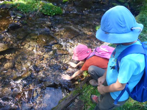沢に手を付ける。ものすごく冷たい水で10秒もつけていると手が痛くなってくる。