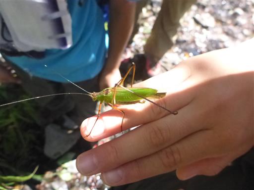 立派な触角のキリギリスを発見。バッタとトンボはあちらこちらにいる。