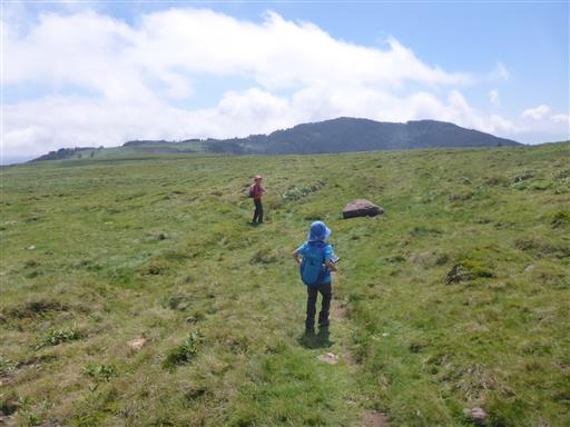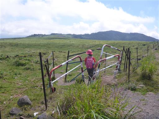 広々とした牧場。一応一本の踏み跡があり、その上を歩いていく。