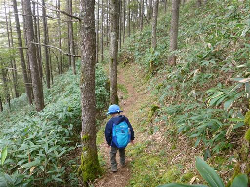 下山は、茶臼山から直接下る道を歩く。周囲は針葉樹林帯だ。