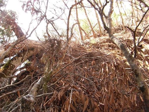 シャクナゲの藪が広がっているところは、刈払いが行われている。