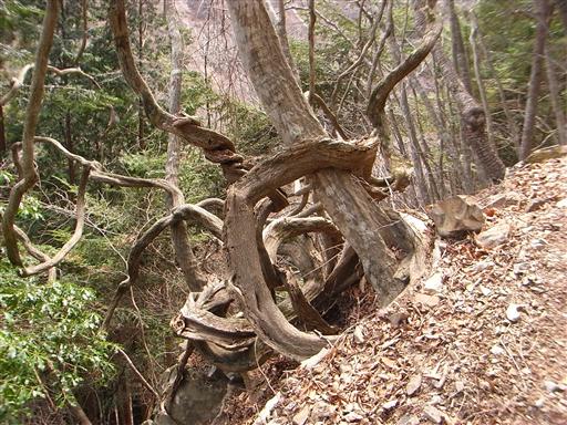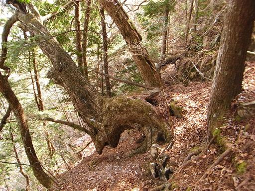 山頂の岩峰直下は巨木がたくさん見られる。
