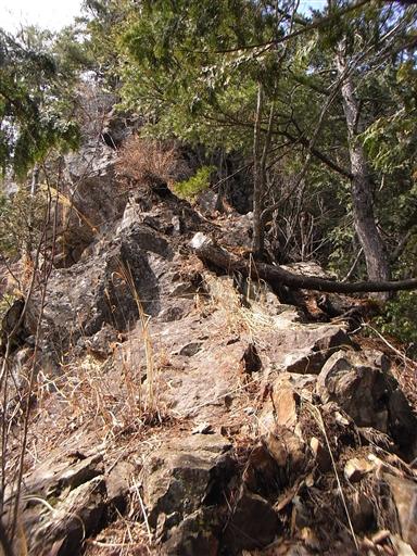 岩山なので狭い尾根上にたくさんの岩が出てくる。