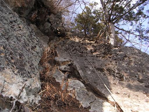 簡単な岩場なのでロープを使わなくても特に苦労なく登れる。