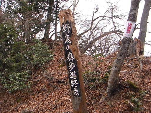 野鳥の森歩道終点の標識がある。