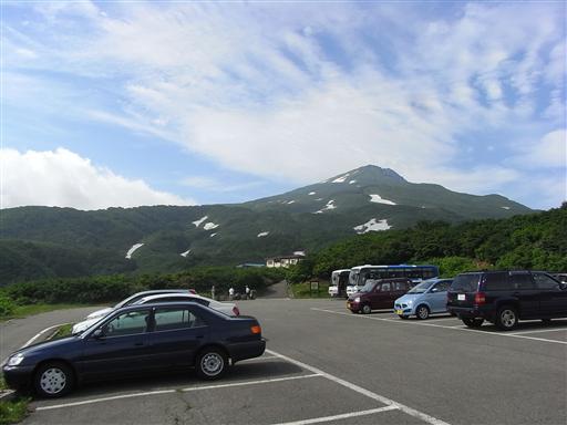 駐車場の向こうに、鳥海山が横たわっている。