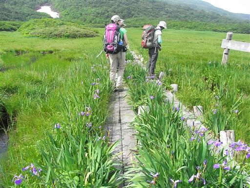 8:45 登山開始。アヤメ咲く竜ヶ原湿原が広がる。