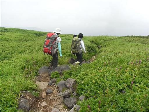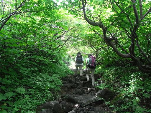 鳥海山に向かって静かな登山道を歩いていく。