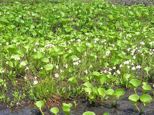 湿原には白くて小さいヒナザクラが群生している。