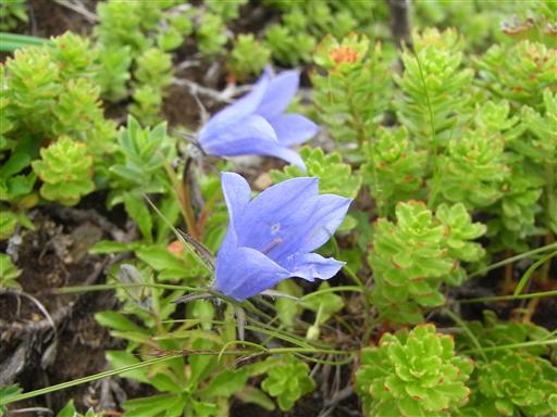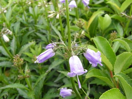ハクサンシャジン。紫の鐘形の花をたくさん付けている。