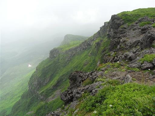 すぐ横には大きな崖が切れ落ちている。