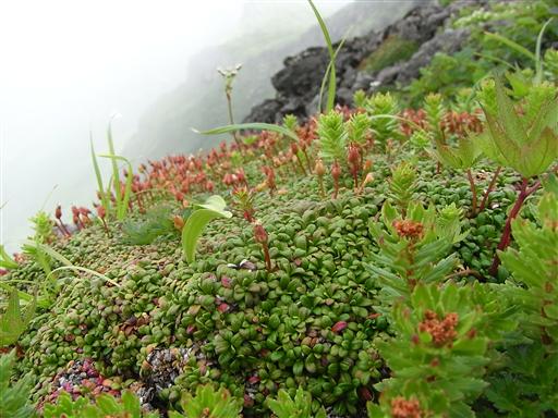 岩の上にびっしりと葉がついていて、触ると弾力がある。