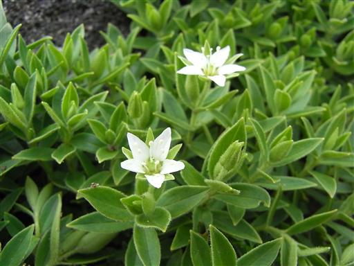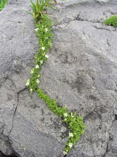 岩の割れ目に沿って咲くチョウカイフスマ。