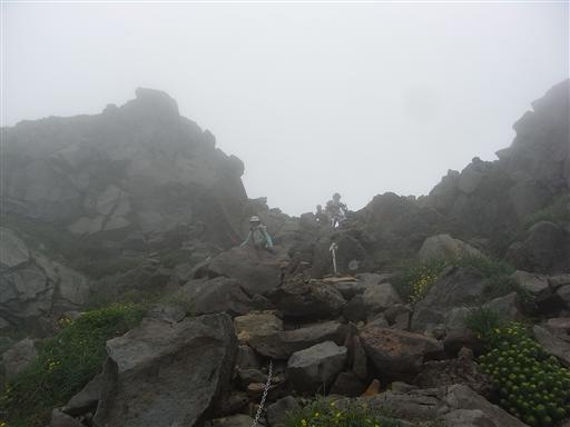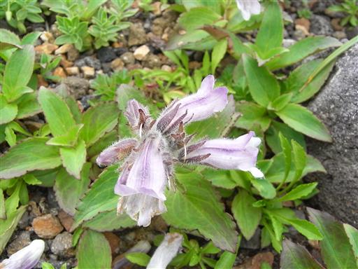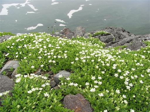他の山域では見られない花だが、鳥海山では岩に寄り添うようにして、あちこちに群生している。