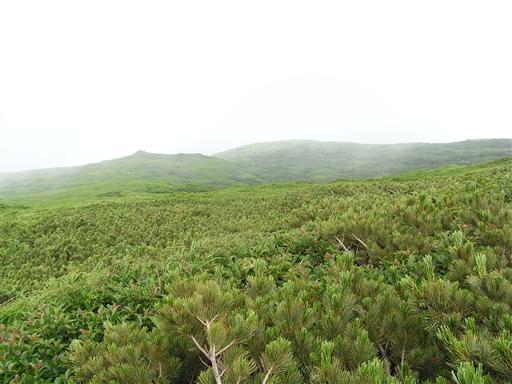 起伏のない斜面にはハイマツ帯がどこまでも続いている。