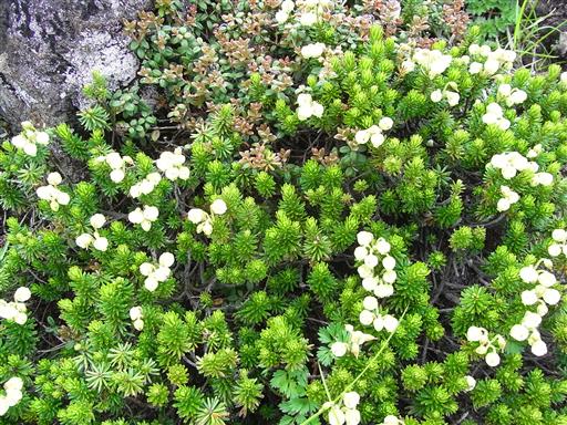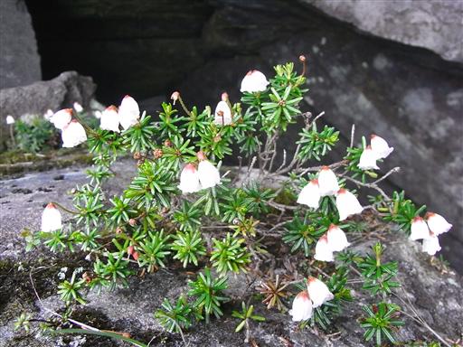 アオノツガザクラ。岩にへばり付くようにして丸い花を咲かせている。
