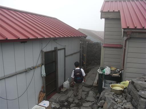 20分ほど山頂にいたが晴れそうにないので、小屋に向かうことにする。